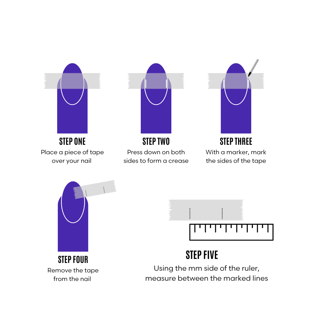 A simple guide to ensure your nails fit comfortably and securely. We have two methods for measuring and finding your perfect nail size. Use one of the two options and follow the instructions below.
